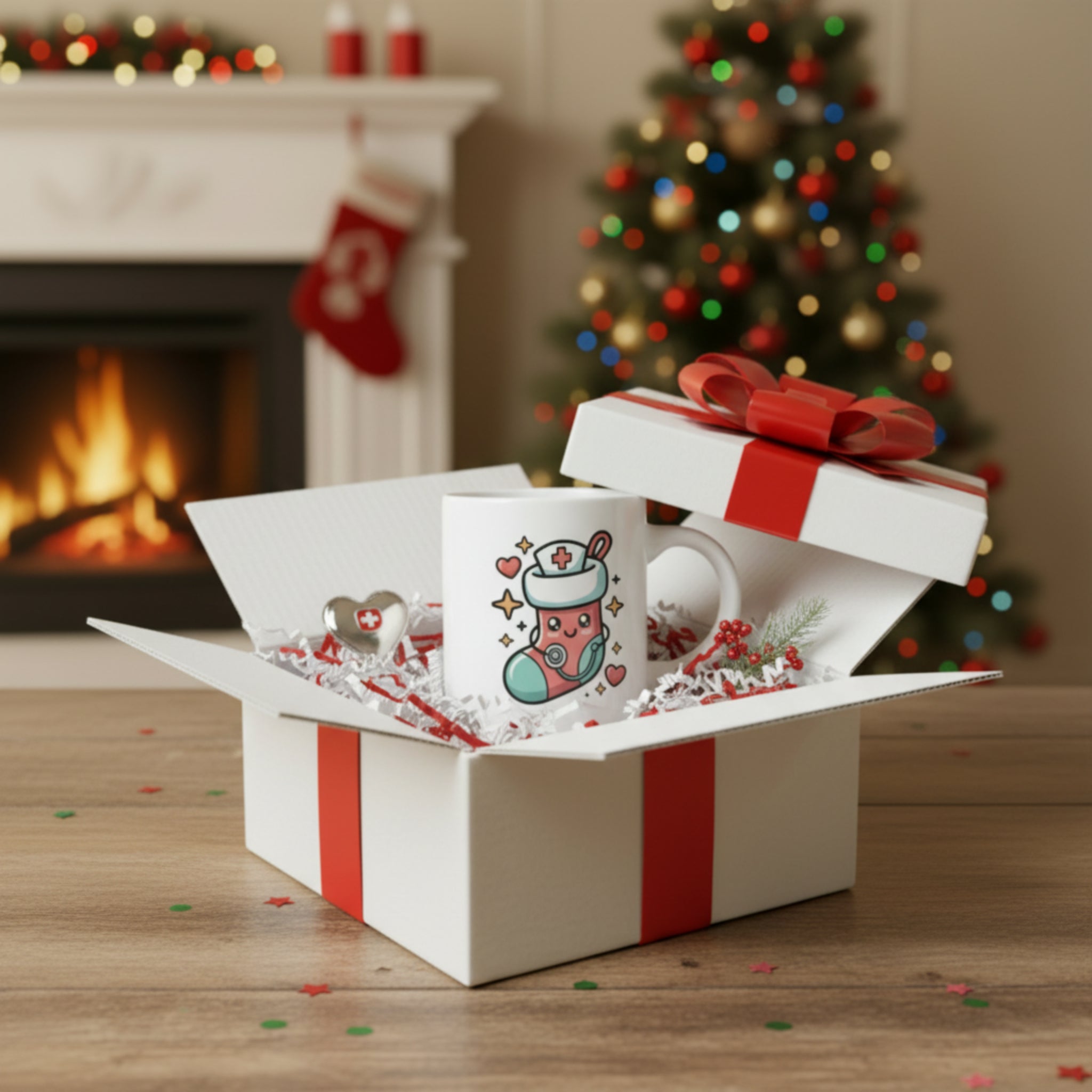 When to use it: During break room coffee breaks when you need a smile, slow mornings before your shift starts, Christmas morning celebrating both the season and your calling, displaying on your desk as a cheerful reminder of why you do this work, gifting to nurse friends who deserve recognition.